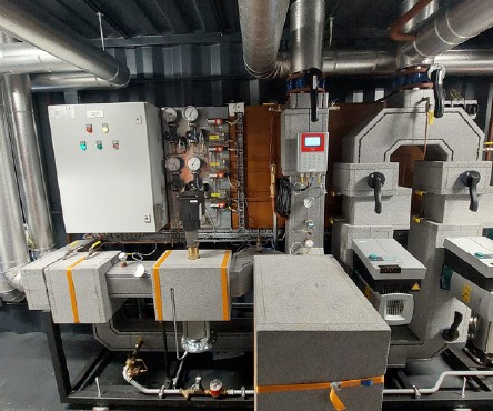 plaatsen we een zeecontainer die volledig op maat is ontworpen en ingericht om de warmtevoorziening van het project mogelijk te maken.